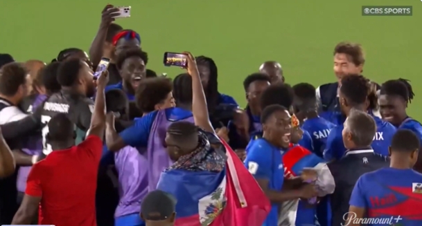 在比賽結束后,球員確定慶祝海地球員圍在一起等待哥斯達黎加vs洪都拉斯的圍起結果。在哥斯達黎加vs洪都拉斯比賽結束后,晉級海地球員瘋狂慶祝。狂歡